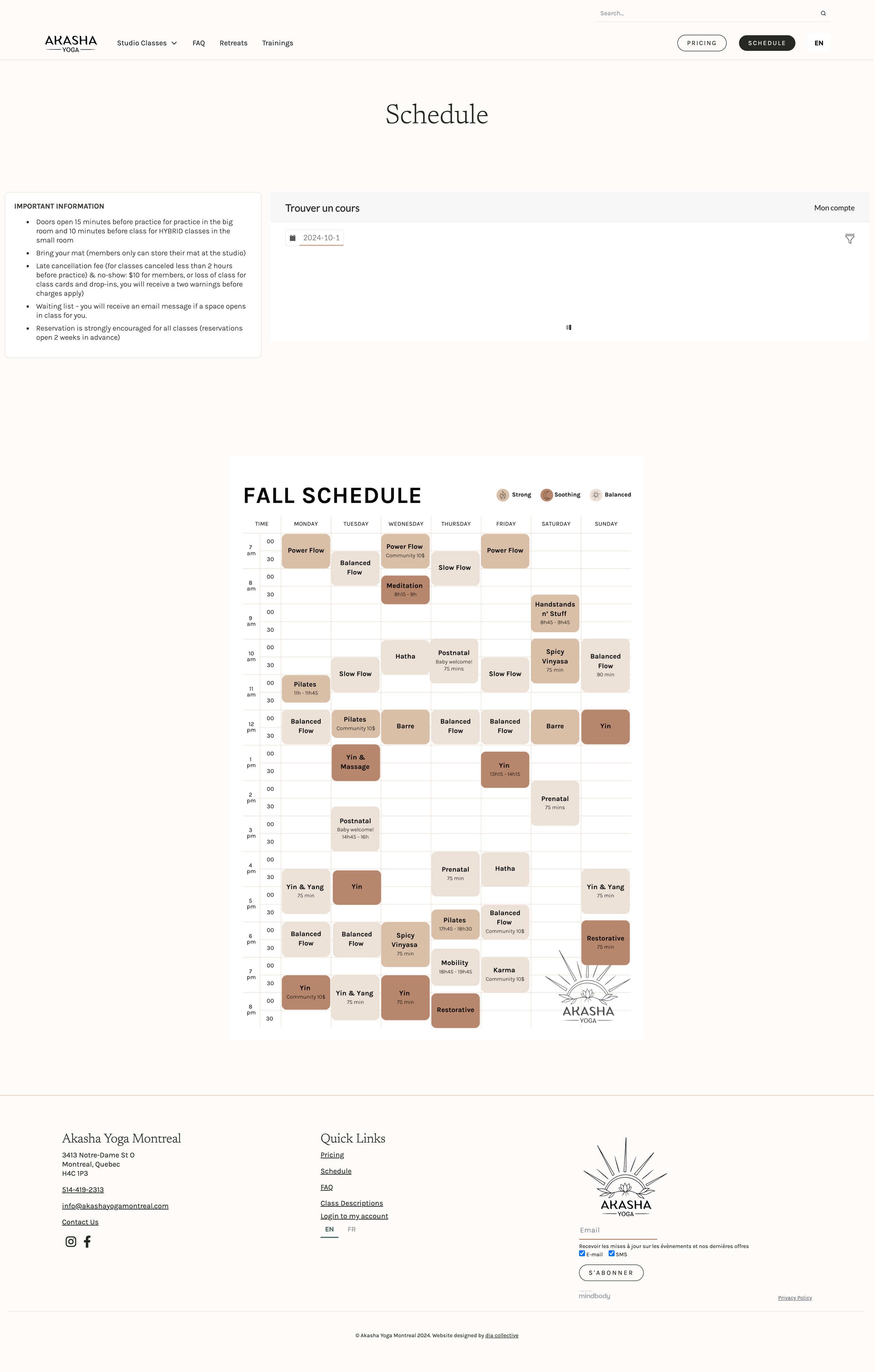 A comprehensive website with booking platform built in Webflow for a Montreal yoga studio