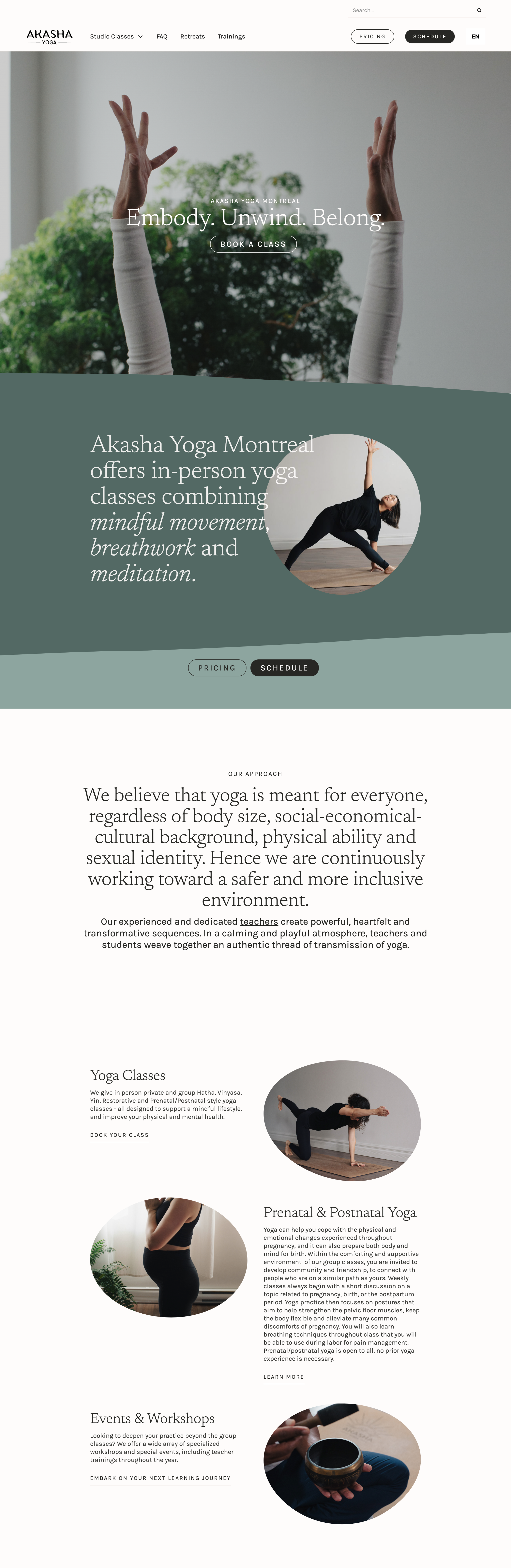Akasha Yoga Montreal changed ownership after the pandemic, and wanted to bring a new life to the website and community. They came to us with only a logo, and we developed the branding, user experience and website in Webflow, integrating their MindBody booking system.