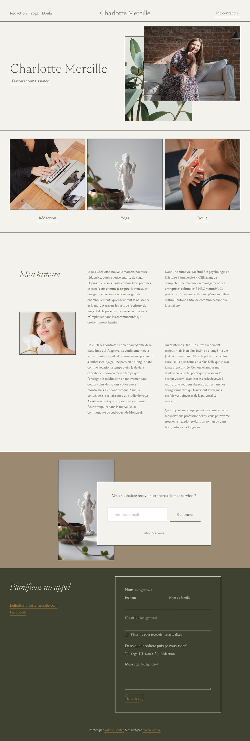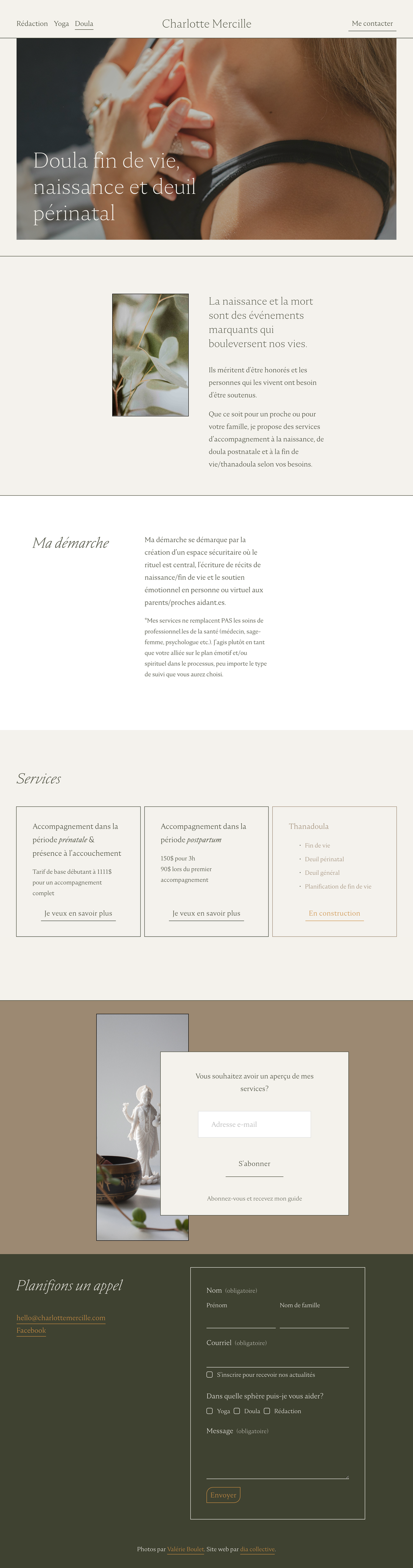 A bespoke website for a doula, writer and yoga teacher based in Montreal