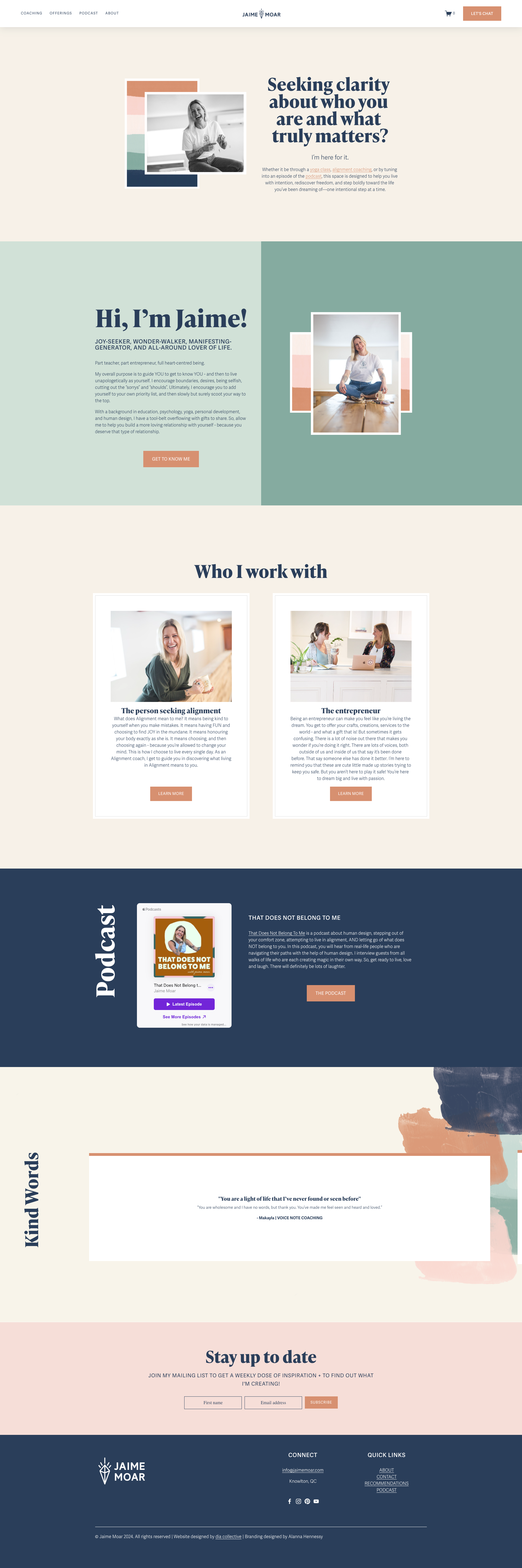 Redesign the site layout to clearly highlight Jaime’s offerings, including yoga, alignment coaching, and human design.