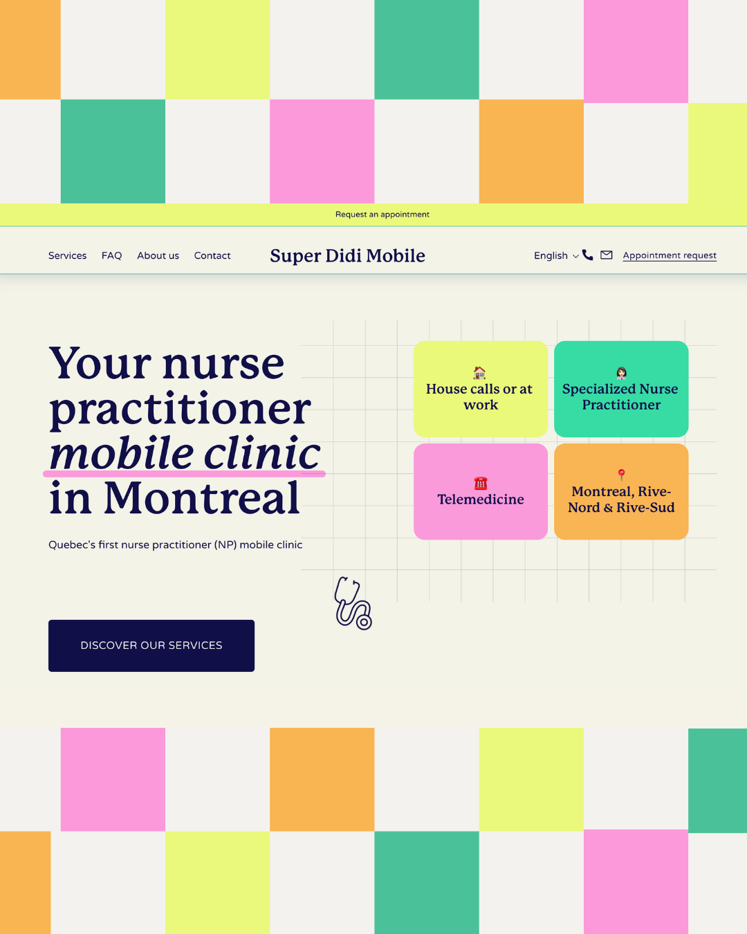 A playful, yet professional website for the first nurse practitioner mobile clinic in Quebec